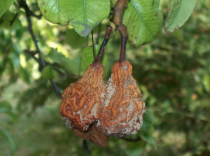 Azonban, ahol tavasszal problémát okozott a tafrina az őszibarackon, a monília fajok a csonthéjasokon és/vagy az almatermésűeken (1. kép), a varasodás az almán és/vagy a körtén, a gnomónia a dión, a málna vesszőbetegségei, a levéllikasztó gomba a csonthéjasokon és a baktériumok pl.: a dión, abban a kertben javaslom a lemosást. Ezzel már a következő évi termés védhető, és a tavaszi fertőzés csökkenthető. Tehát egy alapkezelésnek foghatjuk fel ezt a permetezést. Réztartalmú készítményekkel, erős lombhullásnál - és még a fagyok előtt – kezdhetjük meg a munkát. A jó hatás érdekében a permetléből bőségesen jusson a fás részekre, de a talaj hasznos mikroszervezeteinek a védelmében, minél kevesebb csorogjon le a talajra. A fertőzött ágak, gyümölcsmúmiák eltávolításával, a lemosás előtti kéregkaparással, a beteg levelek összegereblyézésével vagy a talajba forgatásával is sokat tehetünk a jövő évi termésért. Ezt azoknak is tanácsolom, akik most nem fognak permetezni. Tavasszal majd az olajos vagy kénes-olajos készítményekkel érdemes kezelni. Ekkor az áttelelő rovarokat, az idei nyáron megsokasodott atkákat és a lisztharmatokat célozzuk meg.