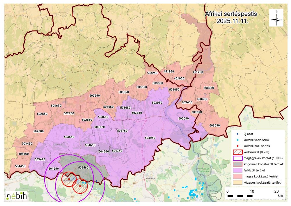 A Nemzeti Klasszikus Sertéspestis és Afrikai Sertéspestis Szakértői Csoport 2025. július 29-i ülésén hozott határozati javaslata alapján Baranya vármegye magas kockázatú vadgazdálkodási egységeinek fertőzötté minősítéséről, valamint az új fertőzött terület körül egyes Baranya, Bács- Kiskun és Tolna vármegyei vadgazdálkodási egységek esetén a magas kockázatú kategóriába történő átsorolásról döntöttek.