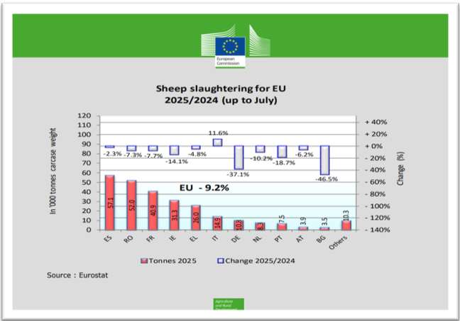 Tekintettel arra, hogy az unió juh- és kecskeállomány létszáma történelmi mélyponton van a juhvágások száma tovább csökkent 2025-ben (júliusig) a legfőbb termelő országok tekintetében, ez alól csak Olaszország jelentett kivételt, ahol 11,6%-kal nőtt a vágások száma. EU-s szinten a csökkenés a juhvágások tekintetében -9,2%-os volt a 2024-es év azonos időszakában rögzített értékekhez viszonyítva.