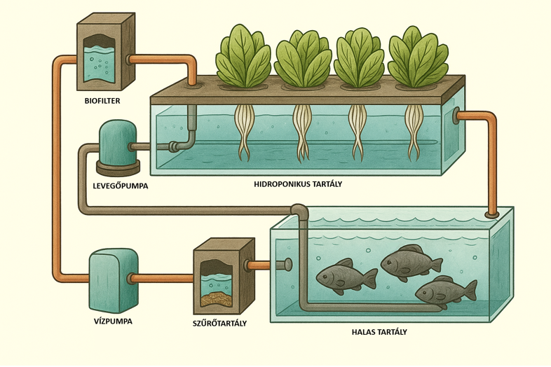 - Növények: felveszik a vízből a nitráttá alakított tápanyagokat, megtisztítva ezzel a vizet, amely visszakerül a halakhoz.